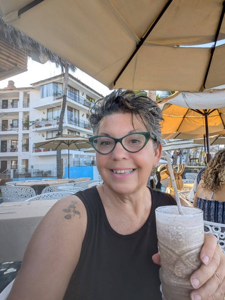 My last week in Puerto Vallarta I got sick with chest congestion (still battling 1.5 weeks later), cough, cold symptoms so I didn’t do too much. However…I met new friends for breakfast at Mar Y Vino in Zona Romantica. This restaurant is on the second floor of a hotel on the beach. We actually sat with our feet in a pool!! The Oreo coffee was like a shake and delicious!!